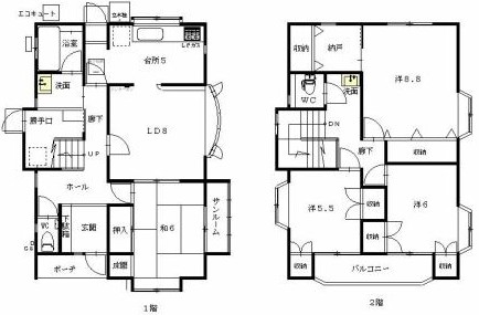 2階:洋8.8・洋6・洋5.5・納戸・洗面・WC