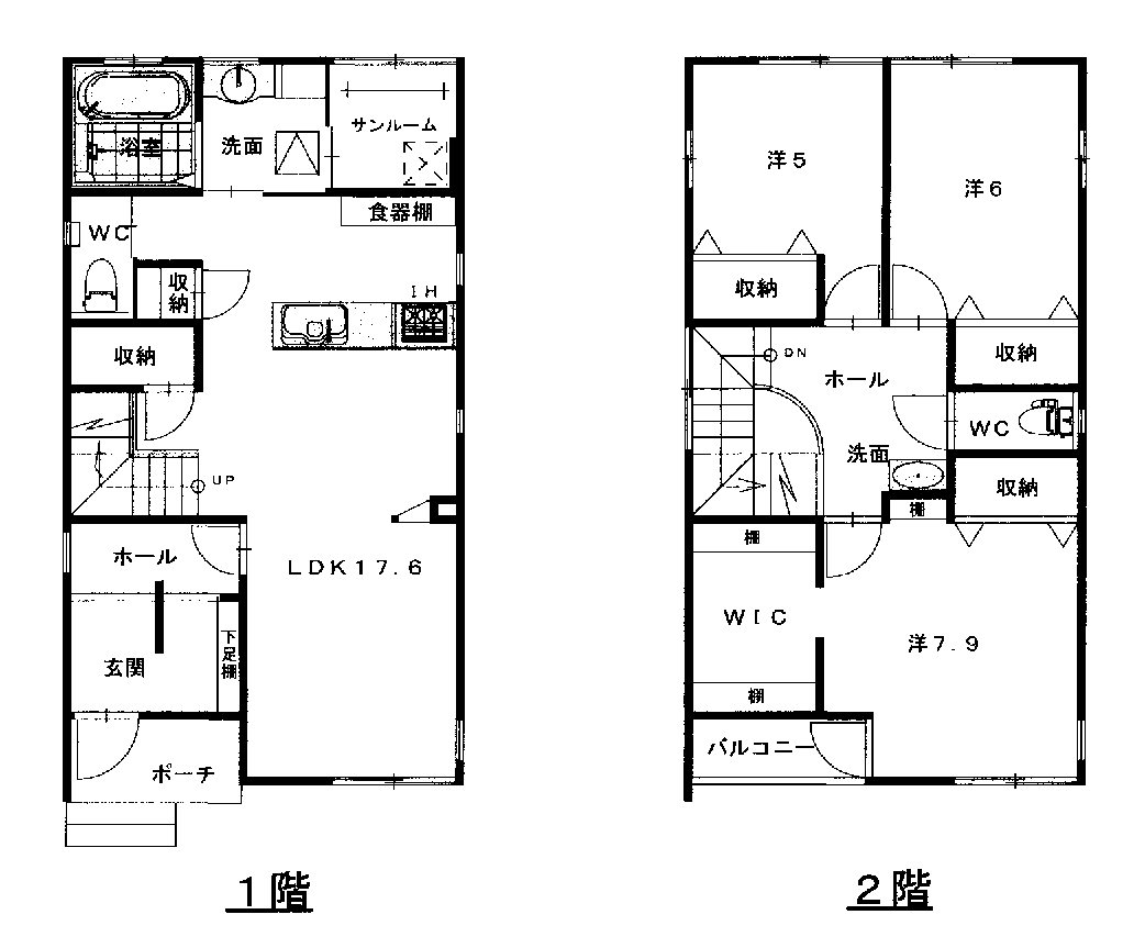 1階:LDK17.6・浴室・洗面・WC・サンルーム